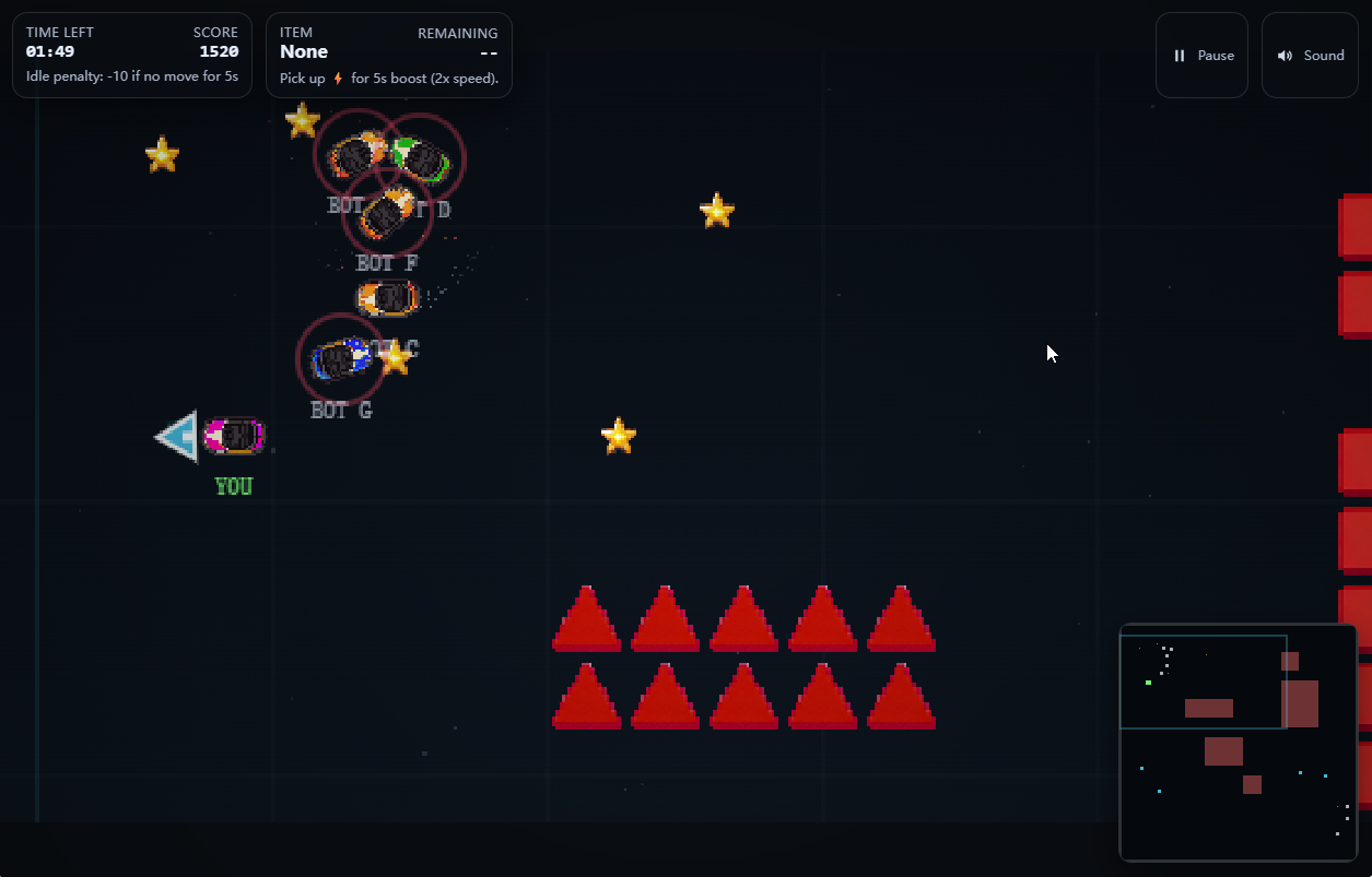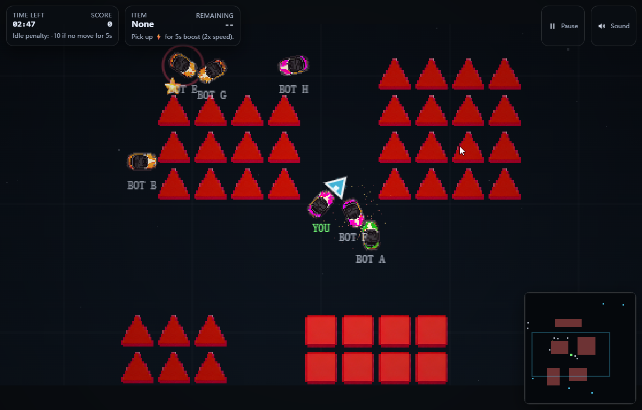 - **Advanced Moves**: Spacebar to trigger a handbrake drift, which allows quick direction adjustments and improves collision accuracy.